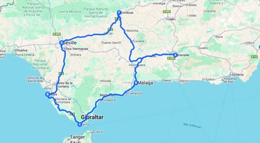 Séville → Cadiz → Tarifa → Malaga → Grenade → Cordoue → Séville